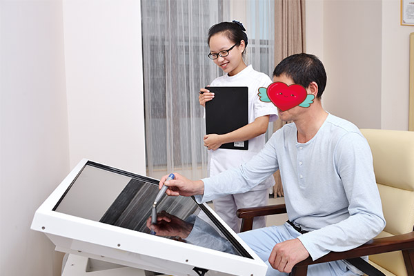 通过新多点屏幕触控、虚拟现实和人机互动技术,提供数字化的高级脑功能和上肢肢体运动功能评估与训练。数字OT评估与训练系统整合了康复评估功能和数字化作业互动训练功能,实现了OT评估、运动控制训练、认知训练、ADL训练跟踪治疗和分析的一体化、数字化。能提供多种数字化作业互动训练,训练游戏相结合,调动病人的积极性和主观能动性,让病人更好地参与到康复训练中去。能提供康复评估量表和互动评估方式,为全面掌握患者情况,将病人每次训练过程量化并通过数据库储存,为康复效果评估、跟踪、对比及康复训练方案编制提供了可靠的依据。