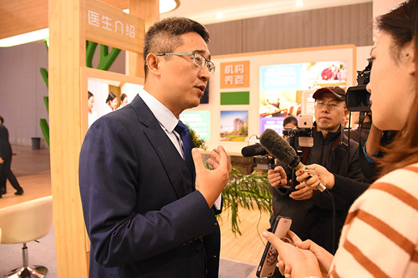 在“第二届亲睦家·医养节暨中国医养融合产业发展峰会”如火如荼进行时,兰波先生参与“亲睦IA发布康养产业整体解决方案供应商”启动仪式之后,来到展厅接受记者媒体们的采访。