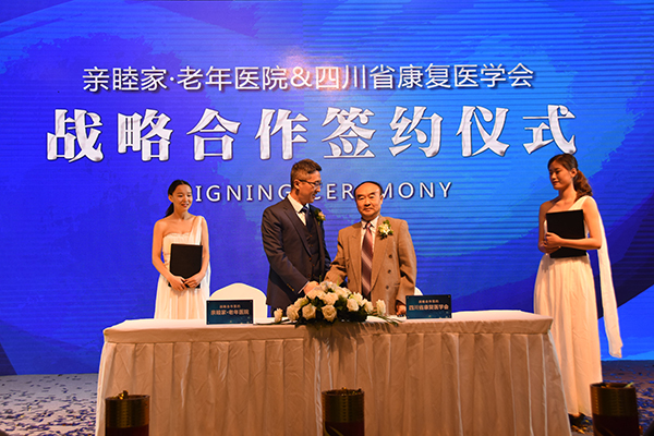 兰波先生在媒体记者采访工作结束之后,回到峰会场内继续会议内容。在跨界大咖主题演讲、意见领袖对话之后,第二届亲睦家·医养节暨中国医养融合产业发展峰会进入会议核心内容:亲睦家·老年医院&四川省康复医学会战略合作签约仪式。“将社会团体、医疗机构、企事业单位等各类资源整合到亲睦家的“康养产业”之中,是为更优质、更安全的老年产业服务的。”兰波先生认为,只有通过不断探索更有利于中国老年产业发展的方式,才能将亲睦家的品牌宗旨变现,未来“大同社会”“老吾老以及人之老”的构想才能脱离海市蜃楼的窘境,成为现实。