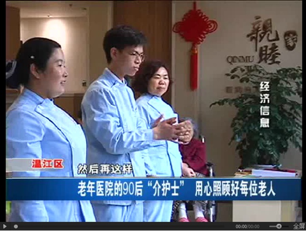 新闻中的这个出生在1998年且文质彬彬的小伙子,名叫李智,目前是亲睦家·老年医院的一名介护士组长,一年前,从四川红十字卫生学校护理专业毕业后,经过层层选拔,来到亲睦家·老年医院。