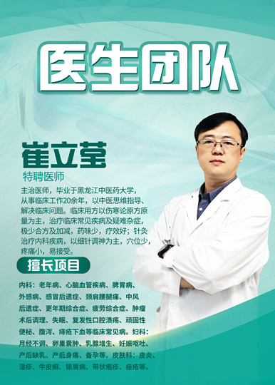 擅长:内科:老年病、心脑血管疾病、脾胃病、外感病、感冒后遗症、颈肩腰腿痛、中风后遗症、更年期综合症、疲劳综合症、肿瘤术后调理、失眠、复发性口腔溃疡、顽固性便秘、腹泻、痔疮下血等临床常见病。妇科:月经不调、卵巢囊肿、乳腺增生、妊娠呕吐、产后缺乳、产后身痛、备孕等。皮肤科:皮炎、湿疹、牛皮癣、银屑病、带状疱疹、痤疮等。