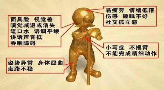 而未能及时就医者,病情发展到中后期时,常会出现激烈的情绪波动与焦虑,身体关节越来越僵硬,越到后面,大小便不能自理,慢慢象个巨形婴儿一样,需要你帮他解决一切问题,完全托赖与你。帕金森本身并不致命,但它所形成的一系列并发症才是最可怕的。
